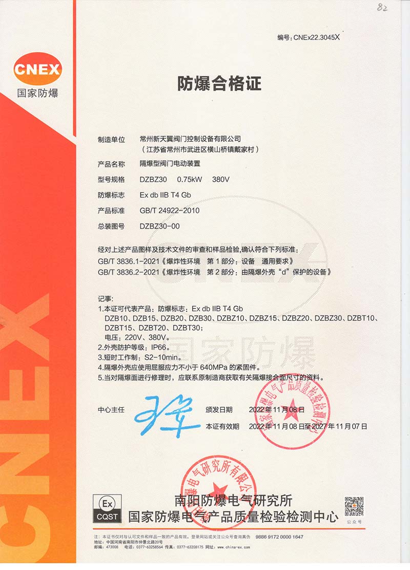 防爆Z10B Z10FB國家強制性產品認證CT4證書109.2
